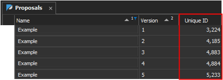 Please add the ability to pull the proposal's Unique ID as a column in every table that includes the Proposal Name and Version columns. Since this Unique ID never changes, it will always be a reliable way to map new records to the old records which they will be replacing.